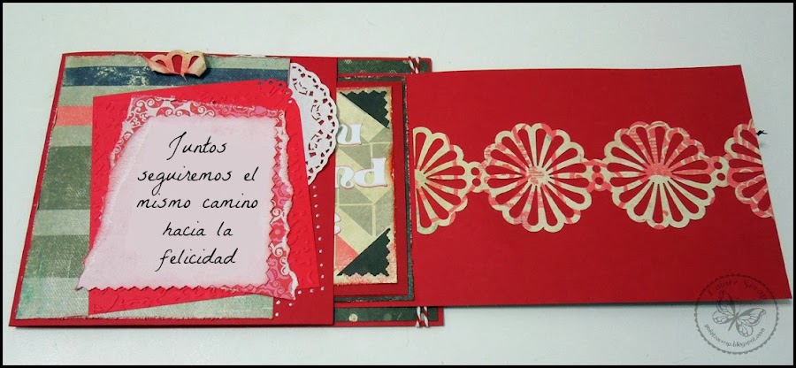 ♥ Papeles de las mismas colecciones y entre medias una cartulina roja embossada en frio con una carpeta de texto. ¿Qué no sabes como embossar en frio? Pincha aquí para ver el tutorial.