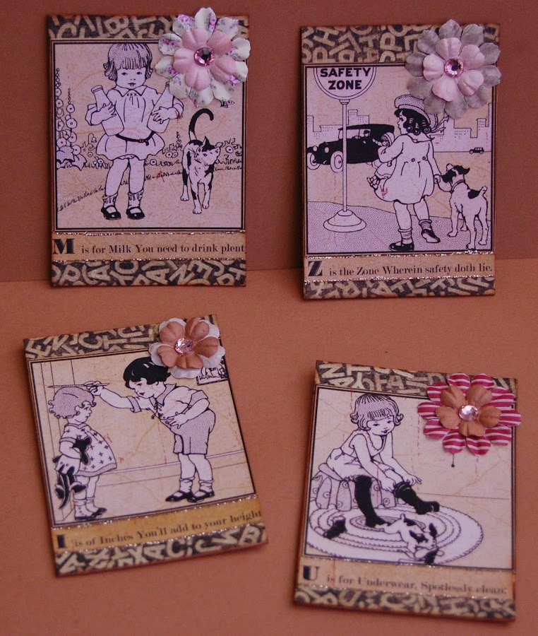 Como me sobró bastante papel, lo utilicé para hacer unos ATC´s que intercambié con varias chicas.