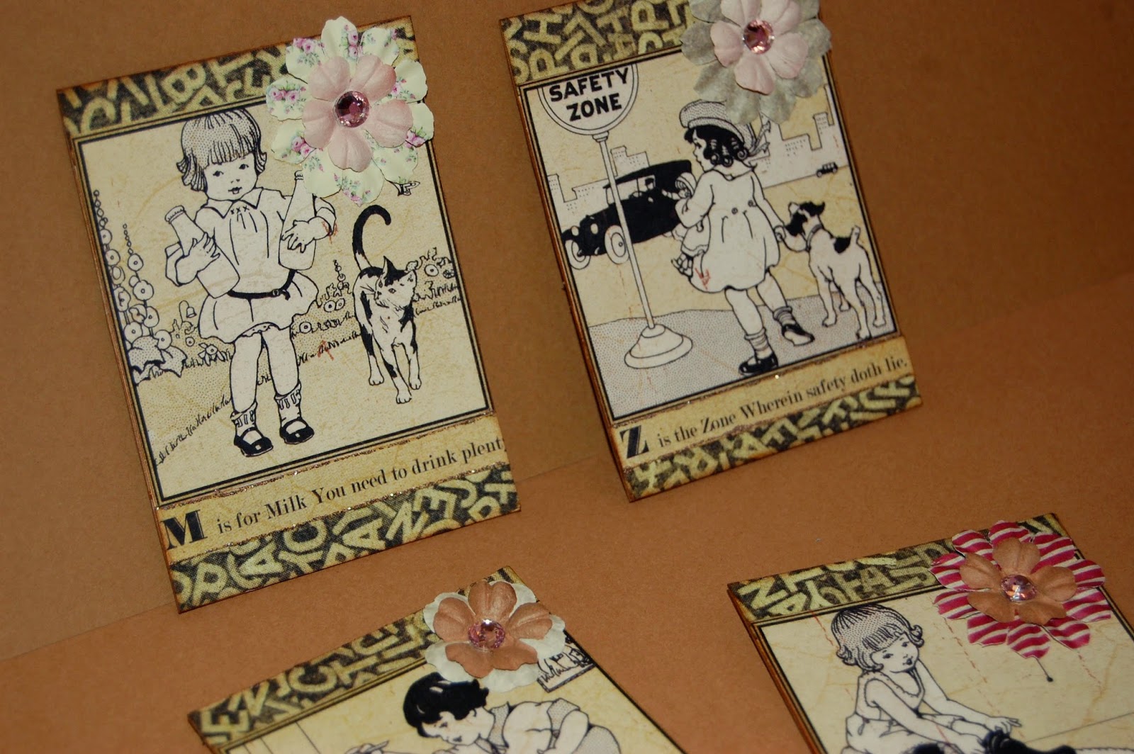 Como me sobró bastante papel, lo utilicé para hacer unos ATC´s que intercambié con varias chicas.