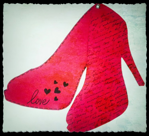 Fue un encargo de último momento, así que en cuanto mi amigo me dijo que quería que le hiciera a su chica una tarjeta en forma de zapato, enseguida se me vino a la cabeza el color rojo y brillantina. No lo pude evitar...