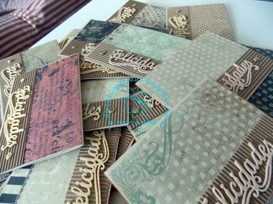 Hoy una serie de 36 tarjetas de caballero titulada "Felicidades". A veces es complicado hacer tarjetas de caballero porque no hay muchos materiales, pero cuando caen en mis manos los papeles adecuados, me pongo manos a la obra y la creatividad se pone a funcionar.