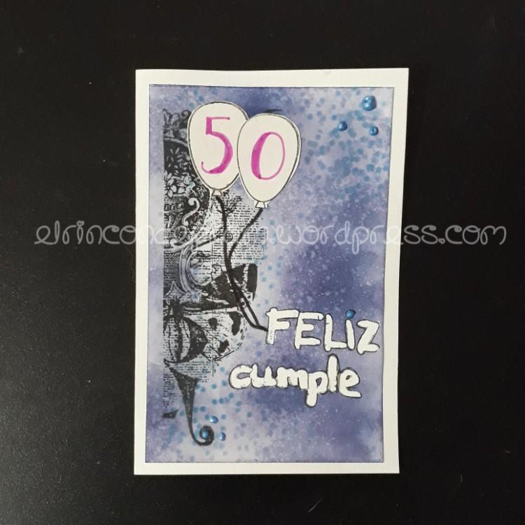 Algunas de ellas las presenté al reto de tarjeta semanal de Nerea Mar. La única que hice sin sello digital, la hice con un sello acrílico sobre fondo hecho con tinta distress.
