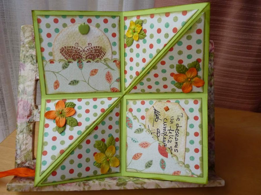 Bueno, y después de divagar un rato, os enseño dos tarjetas de cumpleaños que he entregado este fin de semana. Mi madre y mi hermana mayor cumplen años con un día de diferencia, así que solemos celebrarlos juntos. Y además de los regalos de rigor, no podían faltar tarjetas de scrap. Mi hermana María, que es una artista, y quien me "envenenó" con esto del scrap, también les hizo una a cada una, muy bonitas por cierto.