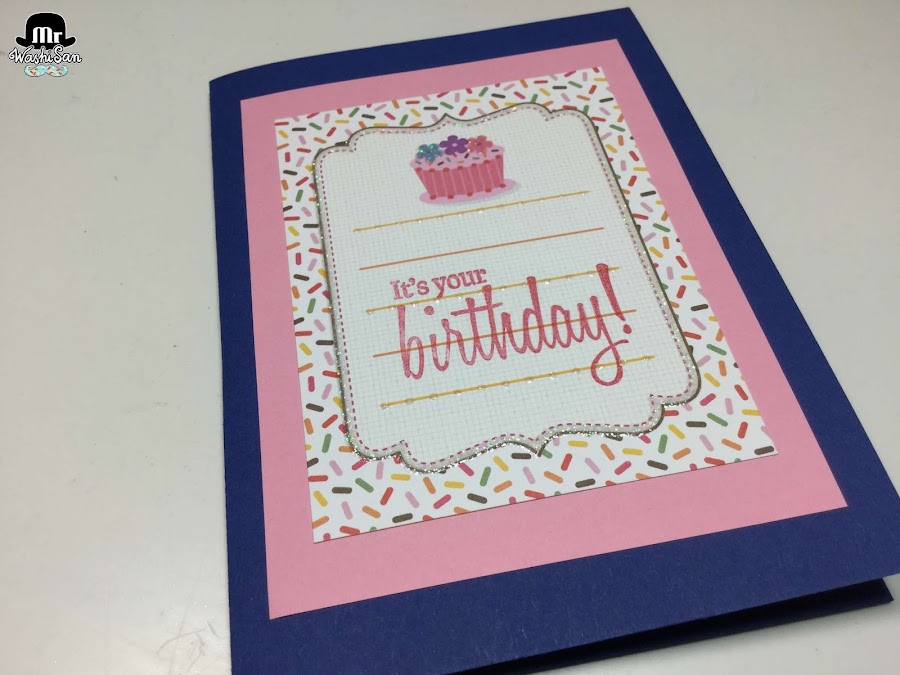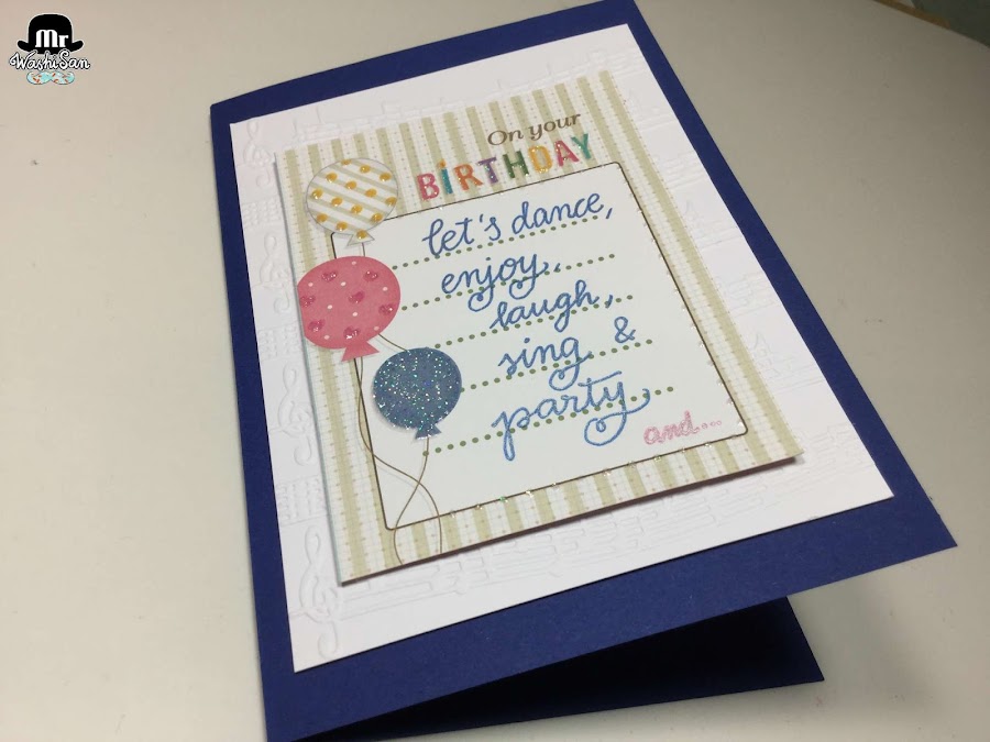 Muchos Kits de papeles de scrapbooking tienen alguna hoja con tarjetitas que podemos recortar, y además son muy decorativas y nos permiten hacer una tarjeta muy rápidamente. Para que las tarjetas resalten sobre el fondo las he enmarcado con un papel de color y algunas de ellas con papel blanco y lo he pasado por una carpeta embossing a través de la cuttlebug y ha quedado una textura con notas musicales. He utilizado escritura a mano con bolígrafos metálicos uni ball signo para poner las dedicatorias y también un sello con tinta.