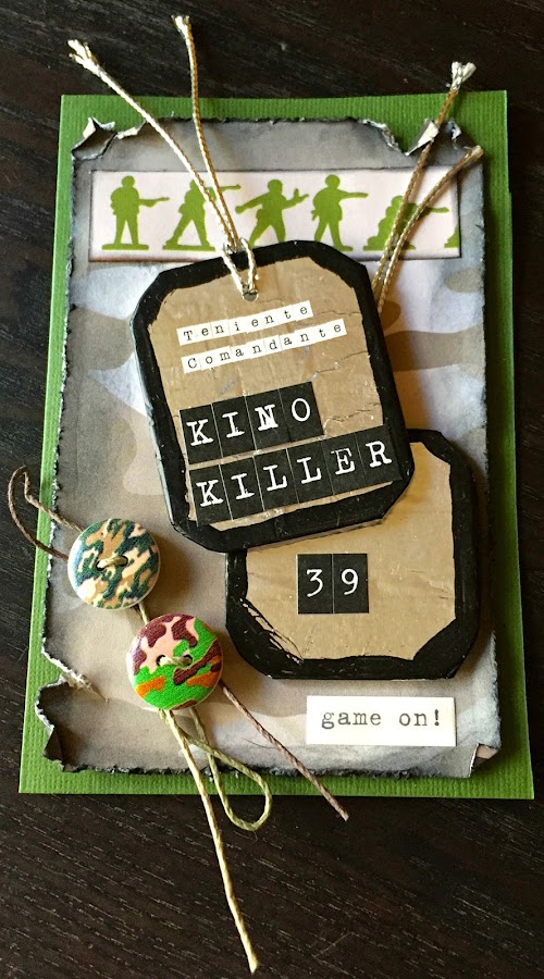Yo liada como siempre con mis cosas. Hoy os enseño dos tarjetas de felicitación para dos chicos que cumplen años. La tematica es la misma aunque diferentes entre si. Los dos les gusta mucho jugar a la Play, aunque uno de ellos le gusta mucho el juego de Call of Duty y he intentado que la tarjeta fuera un poco guerrillera y creo que lo he conseguido.