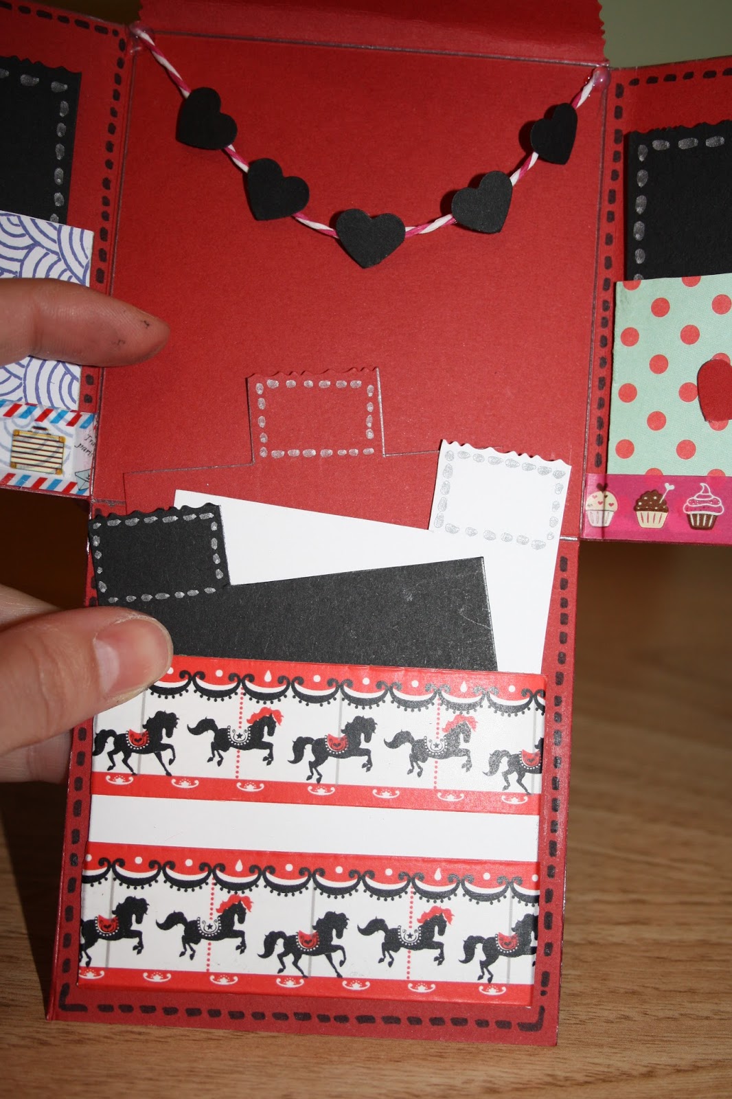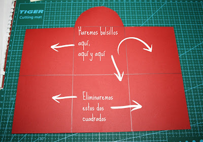 Ahora ya tenemos los tres bolsillos hechos en la cartulina base.