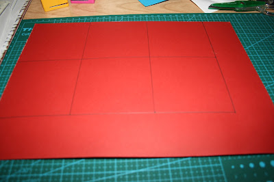 Cogemos una cartulina Din A4 y empezamos haciendo un rectángulo de 18 cms, subdividiéndolo en cuadrados de 9 cms cada uno. En total obtendremos 6 cuadrados de 9 x 9 cms.