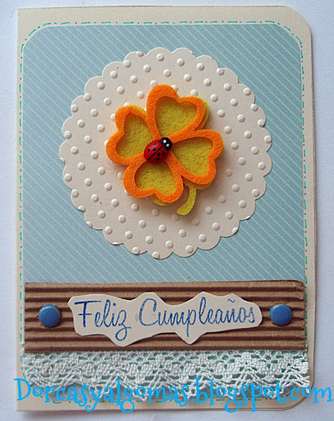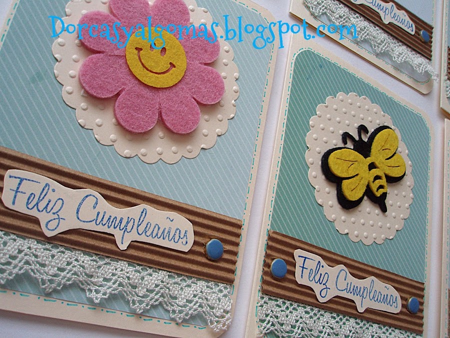 "Muy buenos días a tod@s: Os muestro unas tarjetas de felicitación en las cuales he utilizado unos troqueles de fieltro, en esta caso unas flores y con un mensaje o leyenda: "Es tu día... será un día especial!" Espero que os haya gustado. Recordad que no hay ninguna cosa seria que no pueda decirse con una sonrisa. ¡¡¡Una gran bendición para tod@s!!!