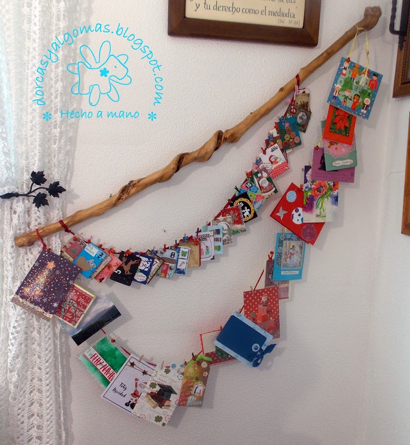 Ahora una fotografía de todas las tarjetas juntas con el calendario de Adviento de Atcs de 2017 en mi rincón favorito de mi salón.