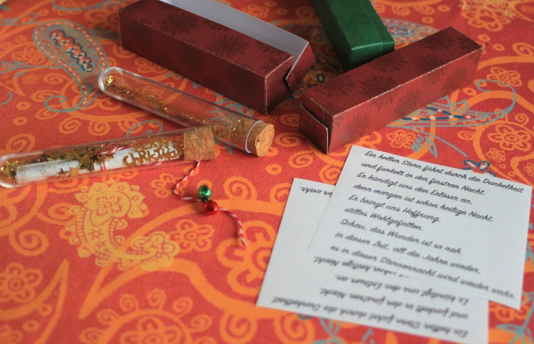 Me pedí por internet estos tubitos de ensayo, a los cuales les hice su cajita del tamaño adecuado, ahora sólo me queda enrollar los mensajitos y empacarlos.