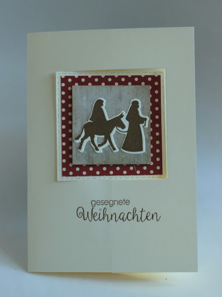 Hace mucho que comencé a hacer mis tarjetas y a medida que las he ido haciendo fui tomando las fotos (algunas) como con esta tarjeta, que ahora que la veo me maravillo con su sello de: "Gesegnete Weihnachten" (Bendita navidad) ni siquiera recordaba que lo tenía!! (Stampin up por supuesto!)
