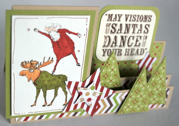 Estos sellos de Stampinup me encantan, papá Noel en pijama igual que los renos, y bailando! este año los he vuelto a usar y seguro seguiré haciéndolo.