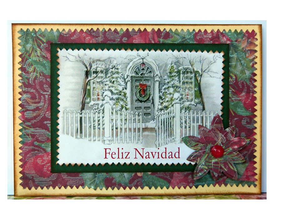 El fondo de ésta puerta es de una colección de papeles de Navidad de K&Company. Es precioso. Es una pena que las fotos no le hagan justicia.