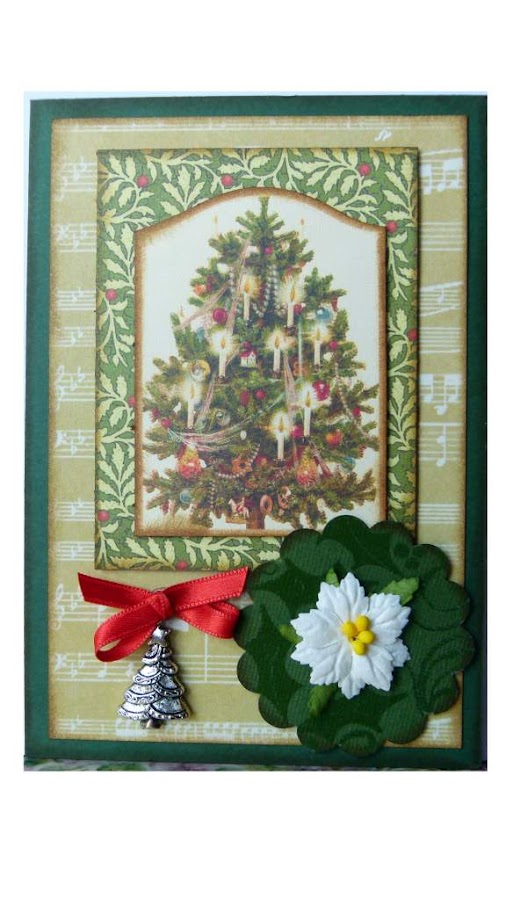 Una imagen de Graphic 45 con un fondo de la misma colección. Y un charm de arbolito muy coqueto.