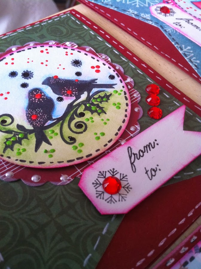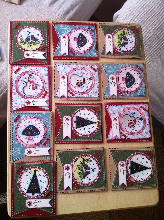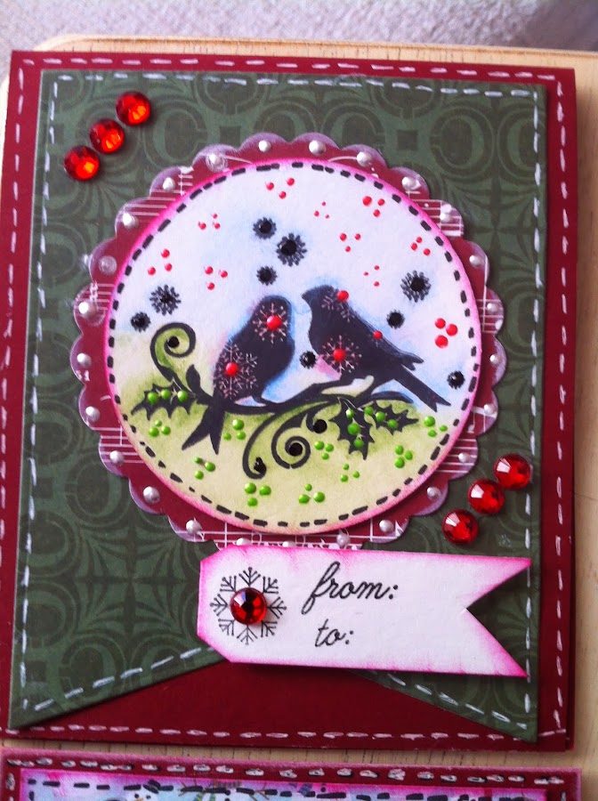 La verdad es que hice varios modelos con distintos sellos. (de la colección Winter wonderland de My mind"s Eye y de la colección de Navidad de My paper World).