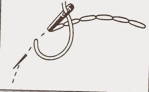 5. Pasarlo por el orificio del centro y sacarlo por atrás de la hoja.