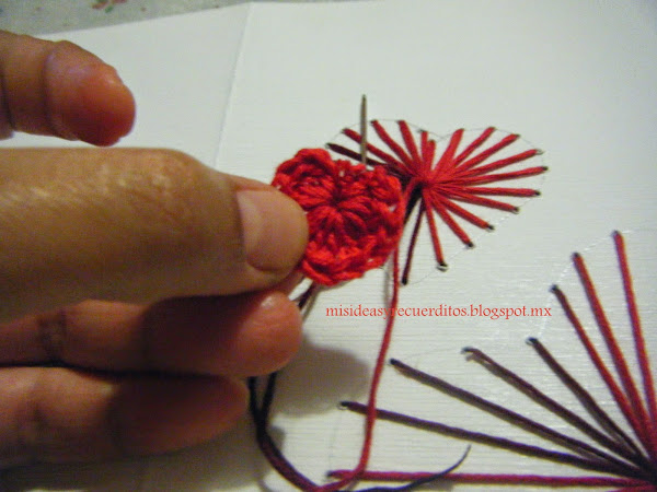 Continúa así hasta terminar el corazón y cuando termines anuda el hilo por detrás para que este no se suelte.