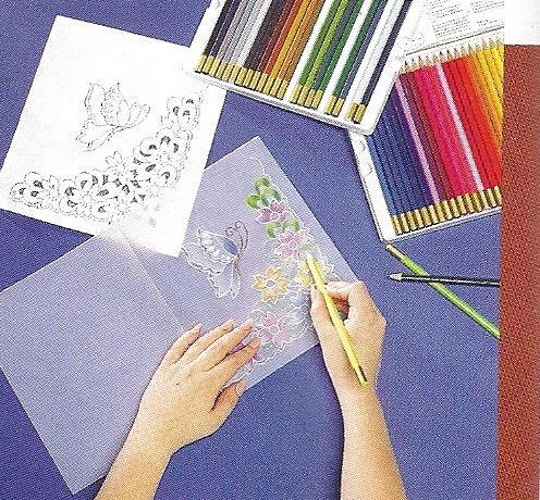 4 - Luego colorea con los lápices policromos o crayones a la cera. Para difuminar los colores se las aplica cera con un algodón, cotonete o esfuminos de cartón. (