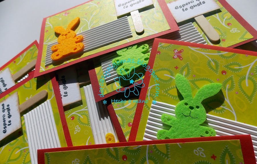 Vamos ahora con una serie de 8 tarjetas infantiles titulada "Conejo".Para realizarla he utilizado unas figuras de conejo en fieltro.
