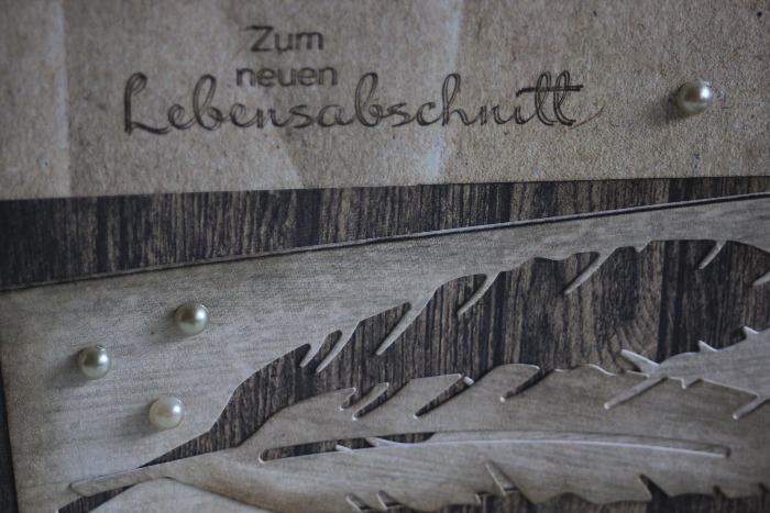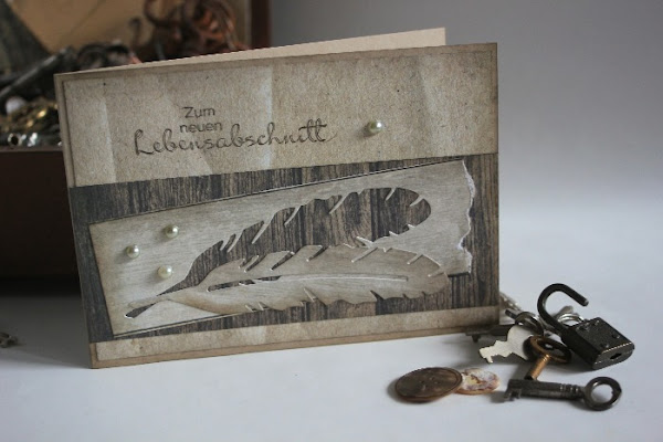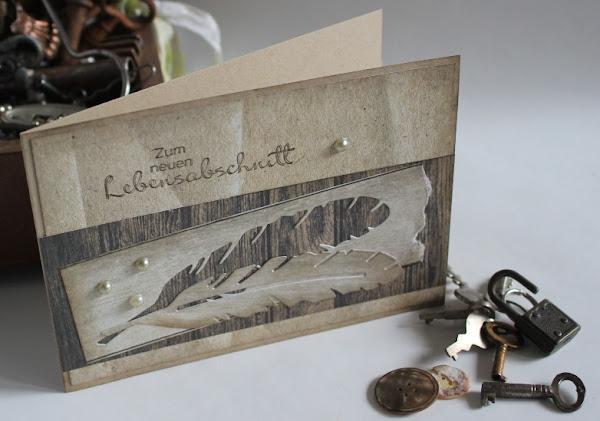 La tarjeta de la entrada anterior era típica masculina con sus engranajes, ésta que te muestro hoy no está muy masculina que digamos, me animé a ponerle una pluma y perlas!