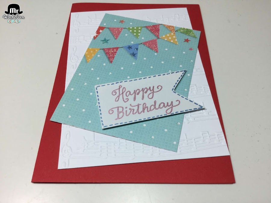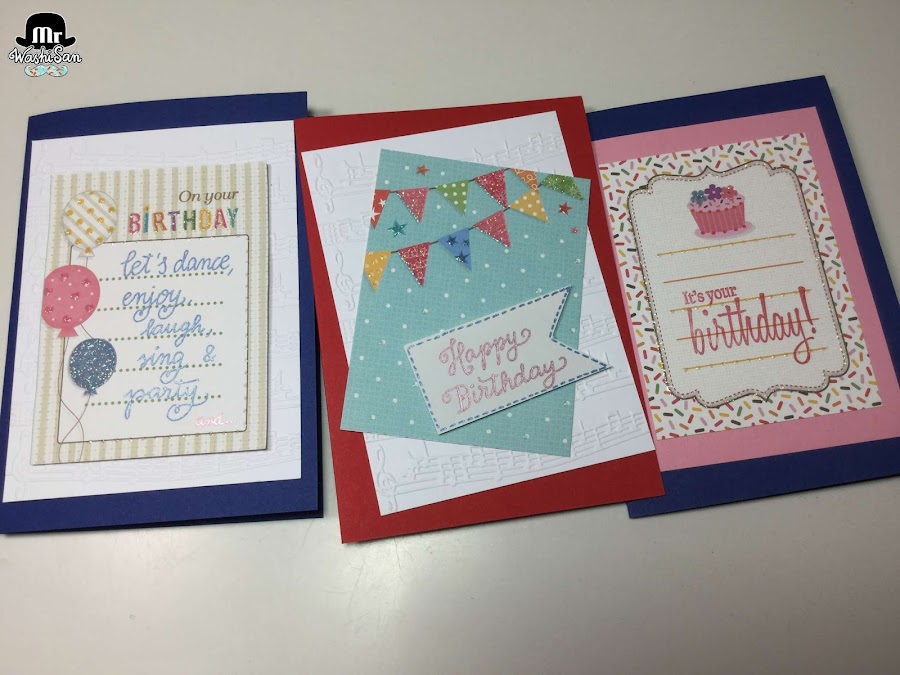 Muchos Kits de papeles de scrapbooking tienen alguna hoja con tarjetitas que podemos recortar, y además son muy decorativas y nos permiten hacer una tarjeta muy rápidamente. Para que las tarjetas resalten sobre el fondo las he enmarcado con un papel de color y algunas de ellas con papel blanco y lo he pasado por una carpeta embossing a través de la cuttlebug y ha quedado una textura con notas musicales. He utilizado escritura a mano con bolígrafos metálicos uni ball signo para poner las dedicatorias y también un sello con tinta.
