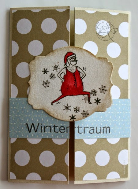 Qué les parece? hacemos un set de tarjeticas para regalos extra rápidas, con una hoja de "Cardstock", o sea cartulina tamaño "scrap": de 12 x 12 pulgadas. Cortamos 8 pedazos de 6 x 3 pulg. ("inchies") las doblamos en dos, y ya tenemos 8 tarjeticas de 3 x 3 pulg. En mi caso, primero les dí unas pinceladas de tinta y agua (tipo acuarelas) de Stampin" up, dejé secar y usé dos sellitos. ( Del set: Visions of Santa. 12 sellos transp. HWK. pag. 29. 18,95 â?¬ ) Podemos hacerles los sobrecitos y listo el regalito!
