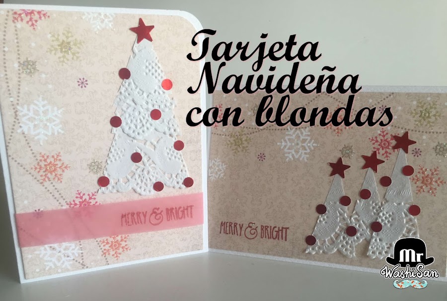 Vamos a confeccionar una tarjeta navideña usando recortes de blondas a modo de abetos nevados. Decorando las blondas como árboles navideños. Muy simple y fácil, pero muy resultón.