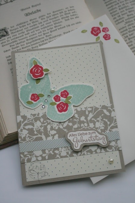 Y yo tenía muchas ganas desde hace marras de usar mis nuevos cortes de mariposa de Stampin up, con sus sellos claro