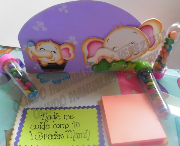 18. Por ultimo pegamos la base en forma de media luna a la base principal, justo en el doblez y terminamos de armar nuestro proyecto. de un lado del cartelito pegamos los Post-it.