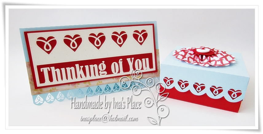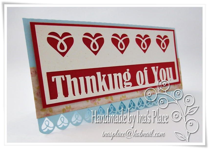 Para esta hermosisima tarjeta,encargo especial, el rojo primario junto al Sky/Bbay Blue juega un papel entre lo delicado y fuerte pero la suavidad y delicadeza de los corazones y el tono neutro que uso para no avasallar el diseño resultan de fácil combinación y equilibrio.