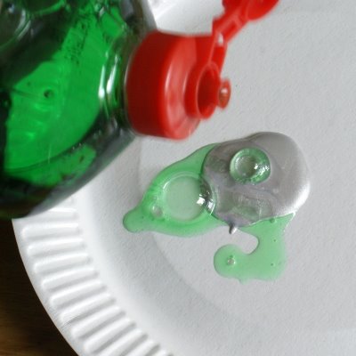 3r paso: Mezclamos la pintura metálica con el jabón (1 parte de detergente líquido y 2 partes de pintura)
