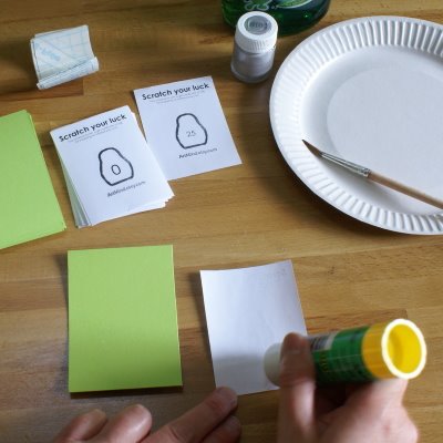 La fuente original y fotografías aquí: http://artmind-etcetera.blogspot.com.es/2009/05/how-to-make-scratch-off-lottery-tickets.html