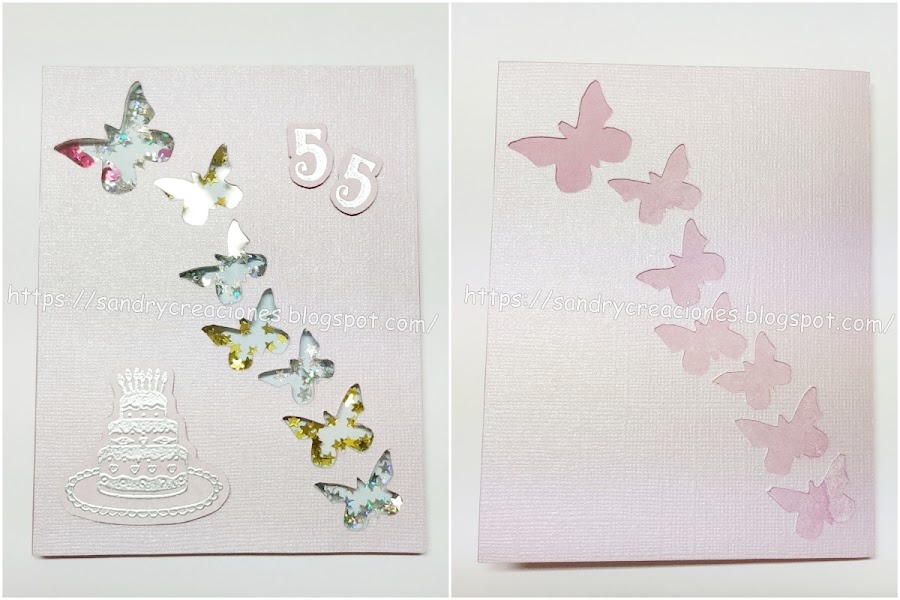Otro modelo que hicimos, y os queremos mostrar también, en temática de cumpleaños es este con la silueta de una mariposa más grande: