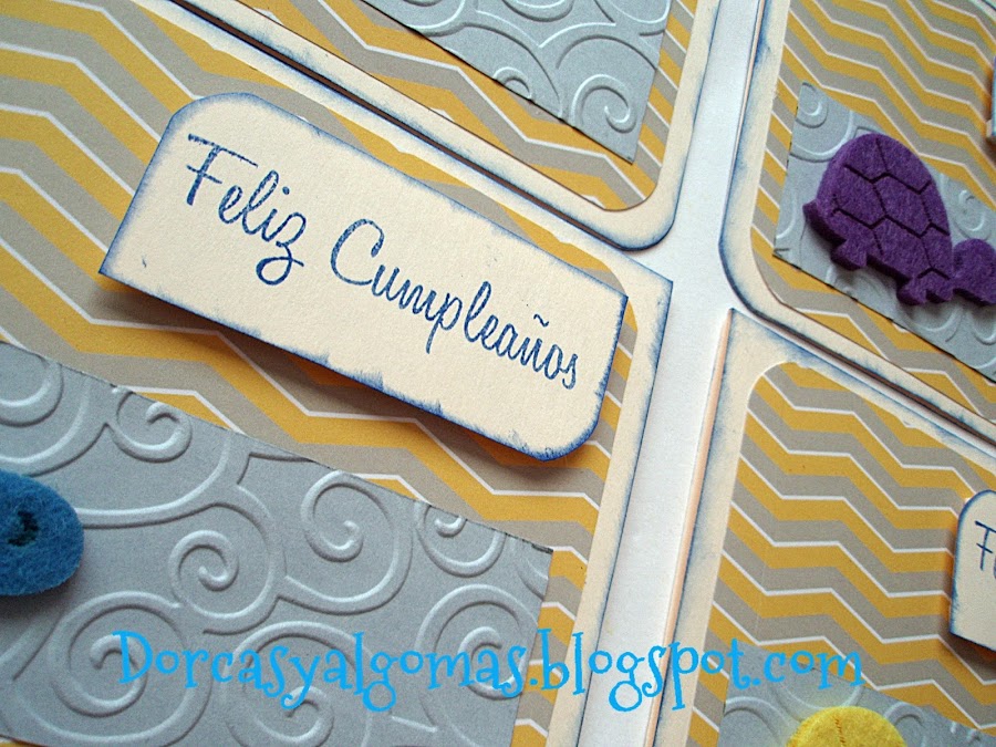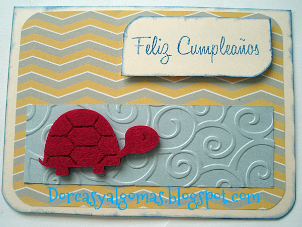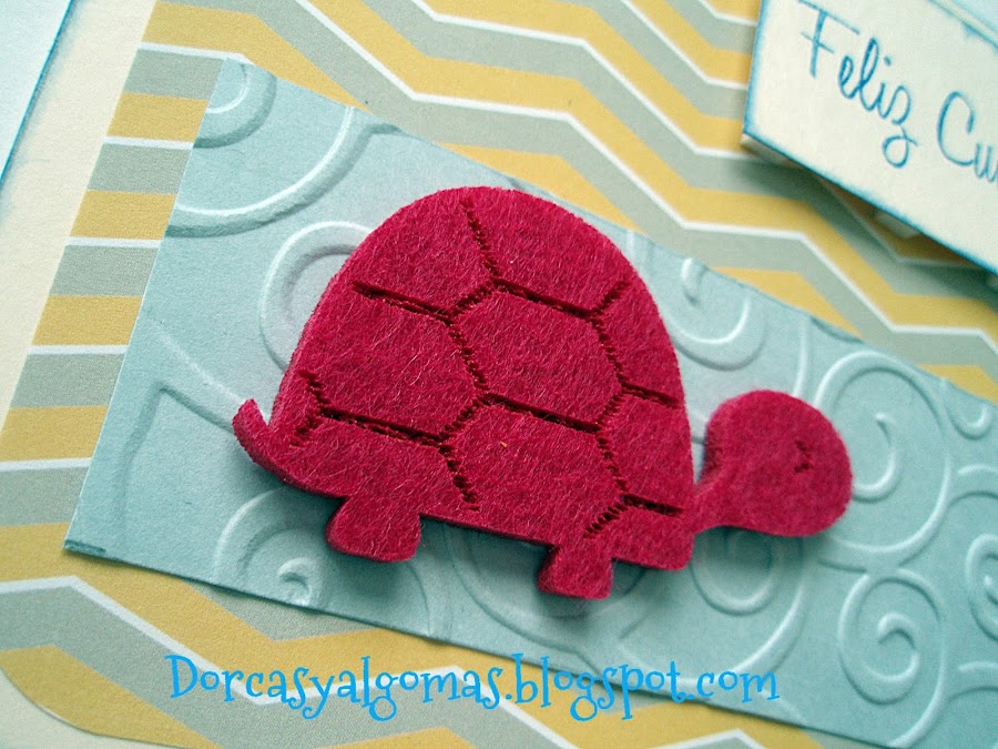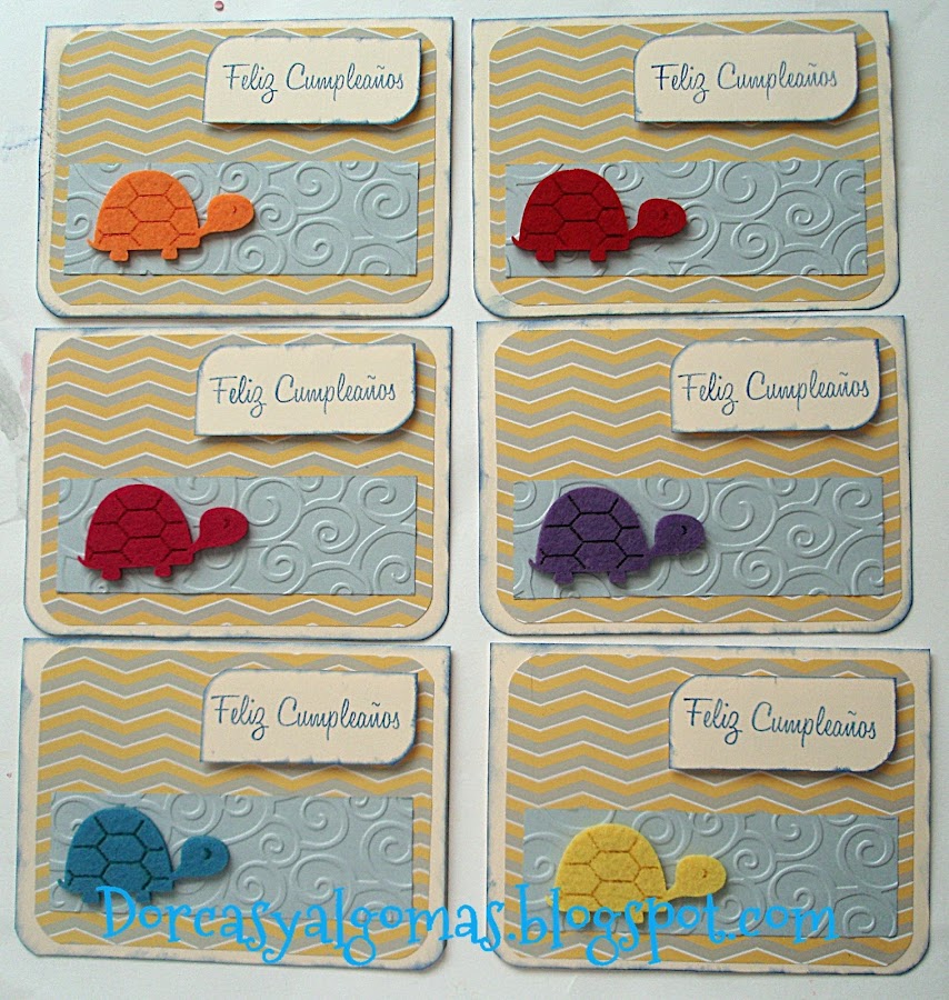 Os muestro unas tarjetas de felicitación para niños, cuyo motivo principal son unas tortuguitas de fieltro que encontré en un bazar.