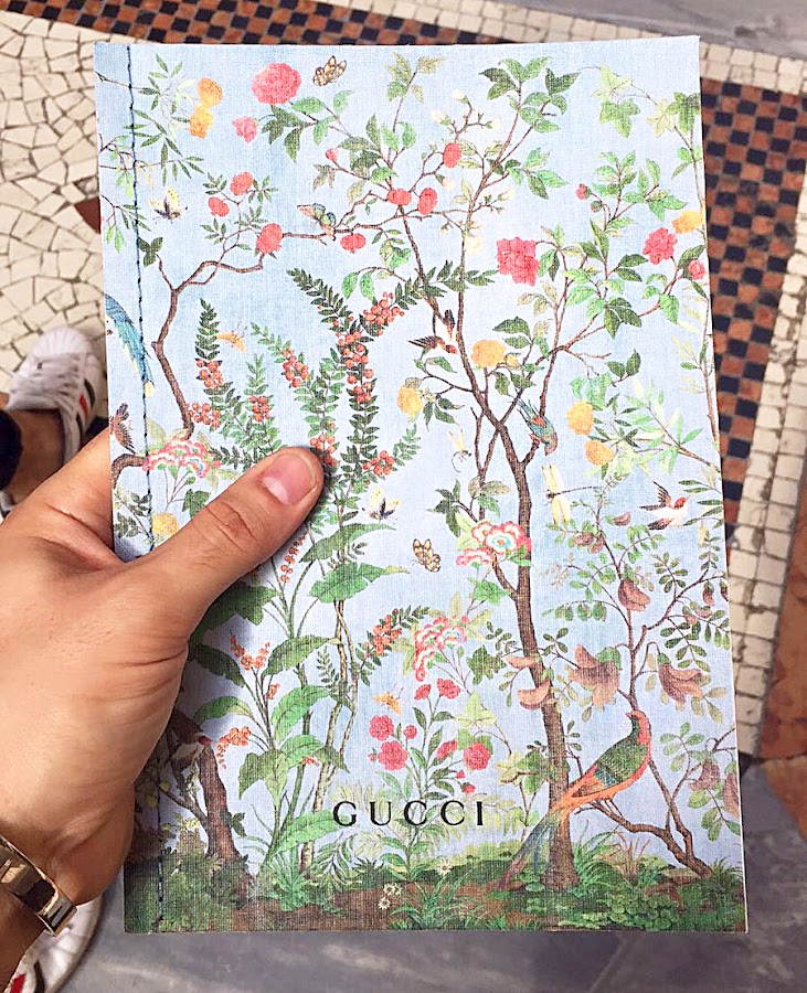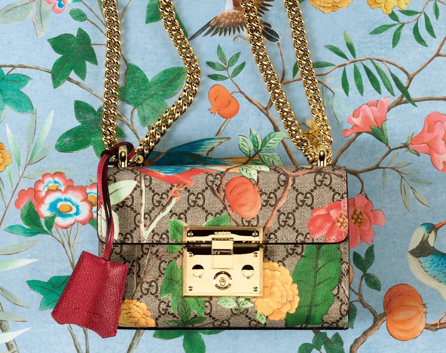 Pues bien, mi hermano fue de viaje este año a Milán a visitar a uno de nuestros mejores amigos y allí se hizo con el catálogo de accesorios de Gucci, concretamente de la Tian Collection S/S 2016. Para esta ocasión se utilizó un patrón o estampado recurrente en casi todas las maravillas que formaban parte de la colección, es el siguiente:
