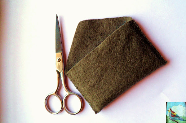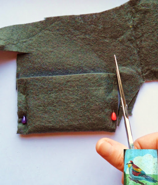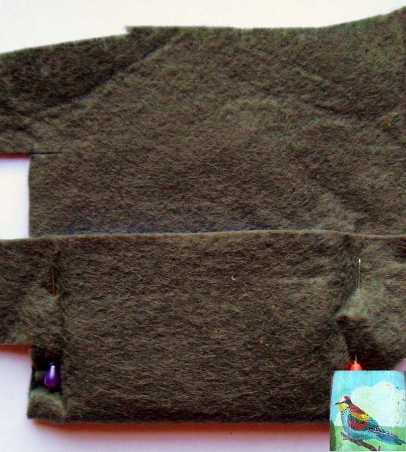3. Cortamos el sobrante por los lados. Yo lo he cortado directamente, pero si no os atrevéis siempre podéis hacer primero una plantilla en papel y luego usar la misma para cortar el fieltro sujetándola a éste con unos alfileres.
