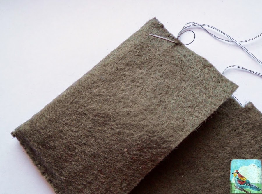 4. Ahora pasamos a coser los laterales. Yo suelo usar hilo de un color parecido al del fieltro, aunque también podéis utilizar un color que contraste si os gusta que resalten las costuras, le da un toque más hand made.