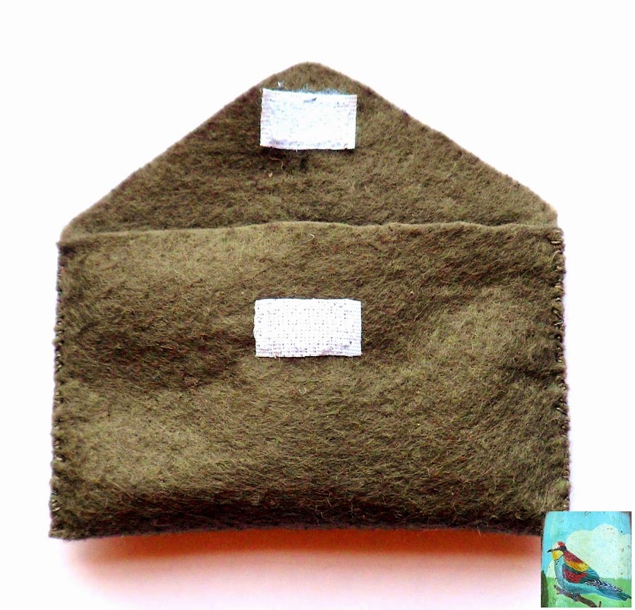 1. Comenzamos tomando la medida sobre un trozo de fieltro lo suficientemente grande, podéis utilizar una regla si lo preferís, yo lo he hecho directamente colocando las tarjetas para calcular el tamaño.