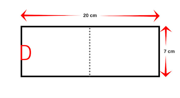 Para empezar, necesitaremos cortar una pieza de goma eva del tamaño que veis en el dibujo, de 20x7cm.