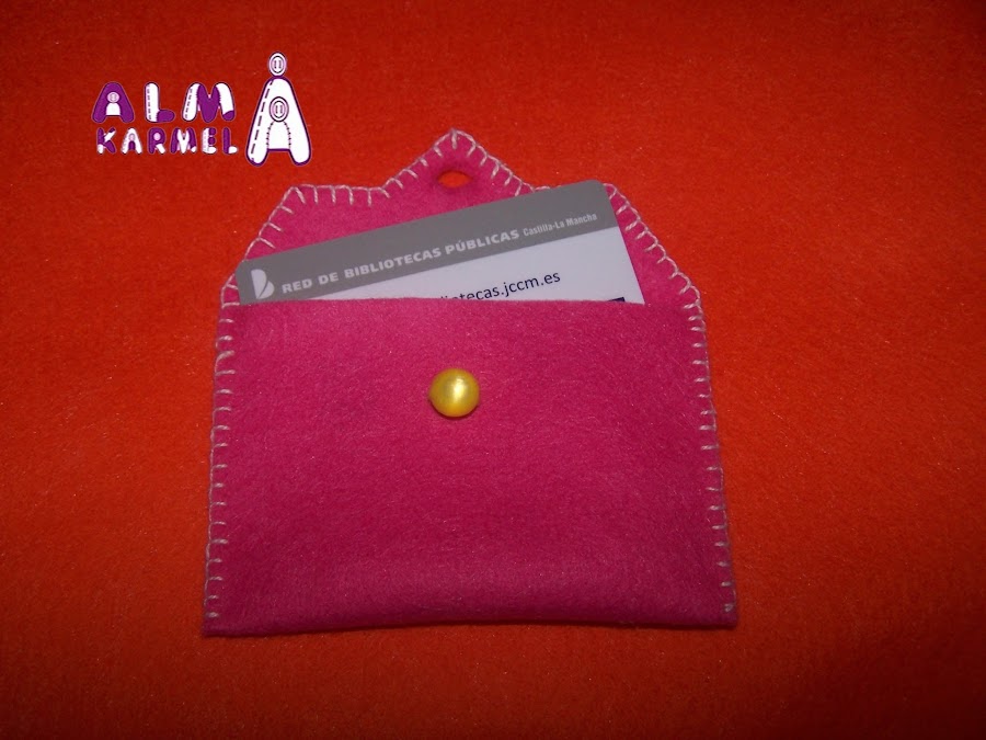 El cierre mediante botón, y con la solapa terminada en pico, y lo usamos para el carne de la biblioteca, a la cual vamos todas las semanas, a leer algún libro y sacar alguna película de "dibujitos"