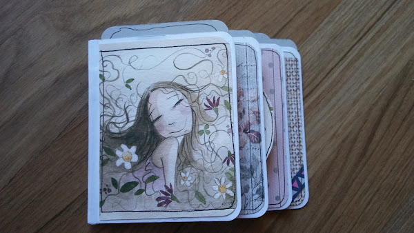 En octubre que tendrá octubreee... que hemos nacido l@s más mejores, jajajaja!! es bromiiiis como dice mi hija, pero en este mes ha nacido una de las mejores personas que conozco y además muy buena amigueta, ha nacido en el mismo mes que mi trastito, mi papi y yo, y mi amigueta Moni nos conocemos ya hace 17 años, vamos casi que vio nacer a mi trastico, la conoció cuando tenía un añito y ya tiene 18 añazos como ya sabéis; yo sí que he visto nacer no literalmente a su dimoniet y espero verla crecer y envejecer, osease que espero tenerte Moni como amiga por muuuuchos muchos años como puedes ver... me dejo de palabras y os enseño la tarjetita que le he hecho, sirve como miniálbum y es la mismas tarjeta que os enseñé en la entrada anterior (tarjeta en cascada con sobres) pero esta es en horizontal en lugar de vertical... por lo que las tarjetitas o tags están en la parte superior de la tarjeta. He vuelto a utilizar para la portada la ilustración de la nena de Arte & Scrap, es tan dulce y tierna, y los papeles interiores son románticos