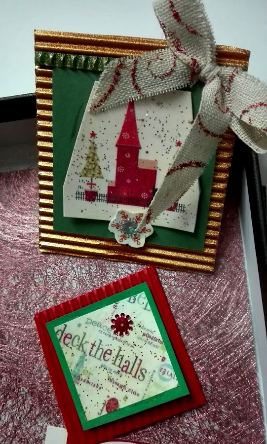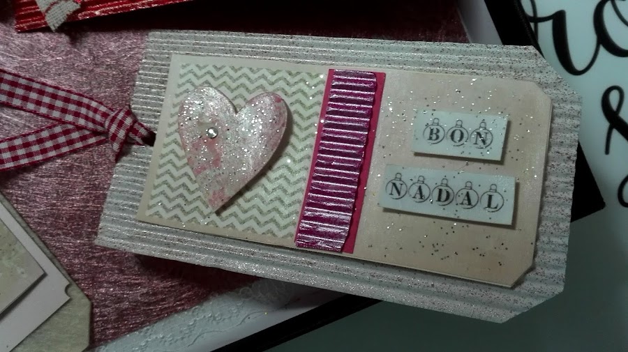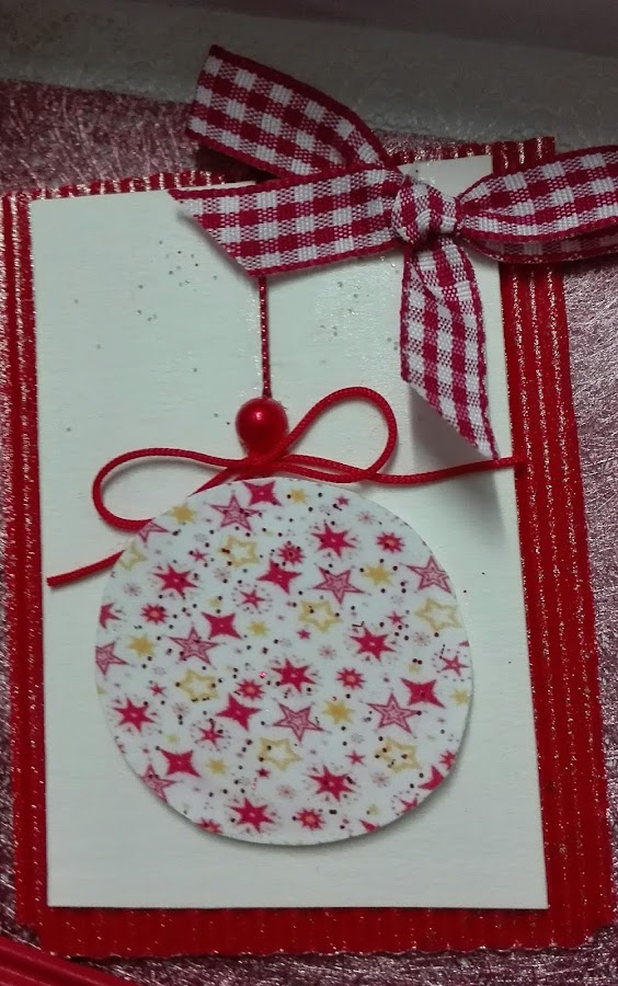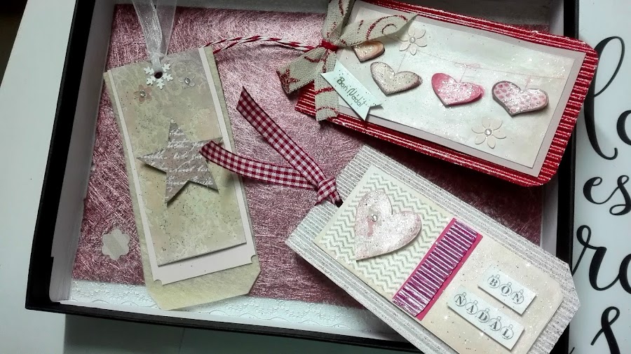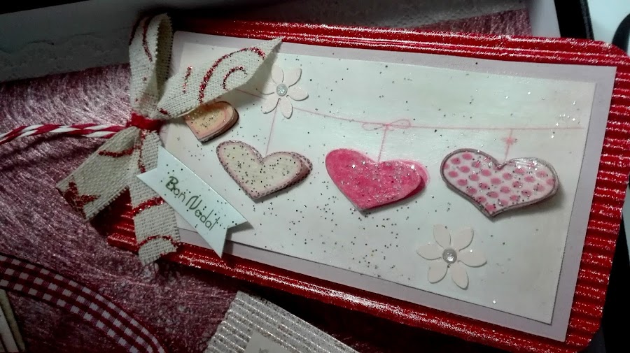 Lazos, un poco de decoupage, cartulinas, perlas, brillantina...