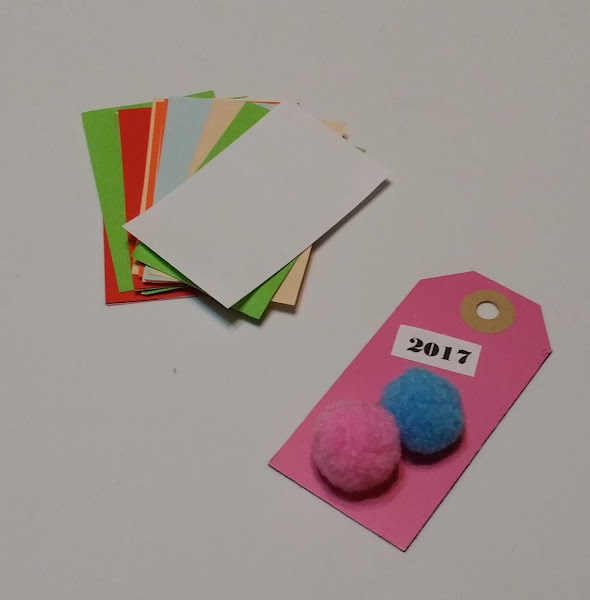 He recortado los papeles de colores del mismo tamaño que la tarjeta de cartulina que tenía (son un poco más cortos para que dejen libre el agujerito de la tarjeta).