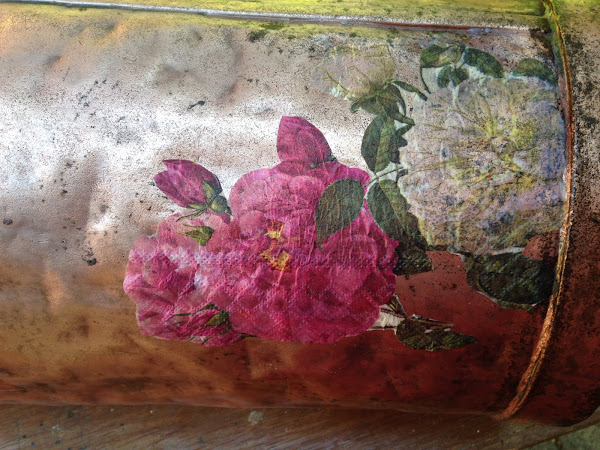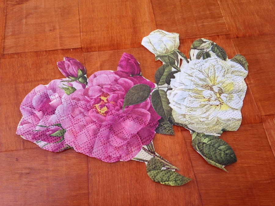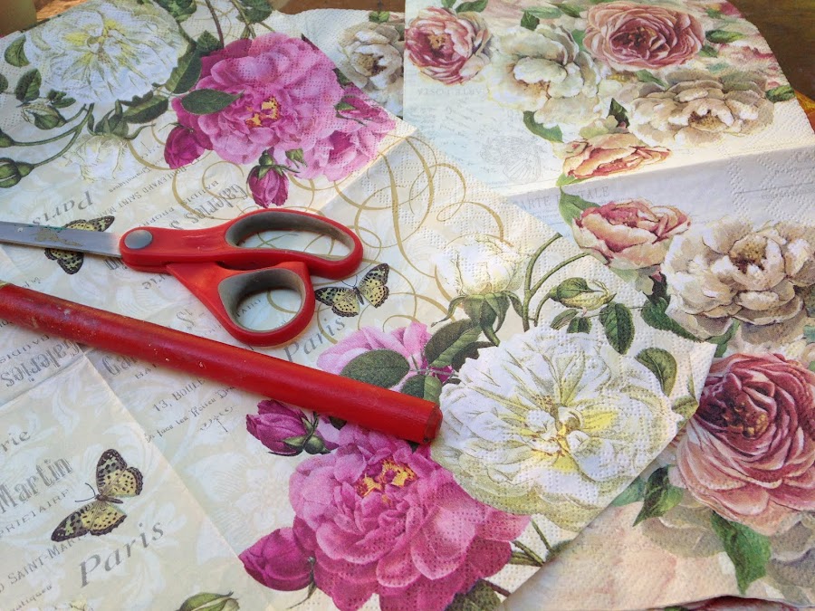 Luego aplique decoupage con la idea de que las flores no resalten demasiado para darle una onda vintage.