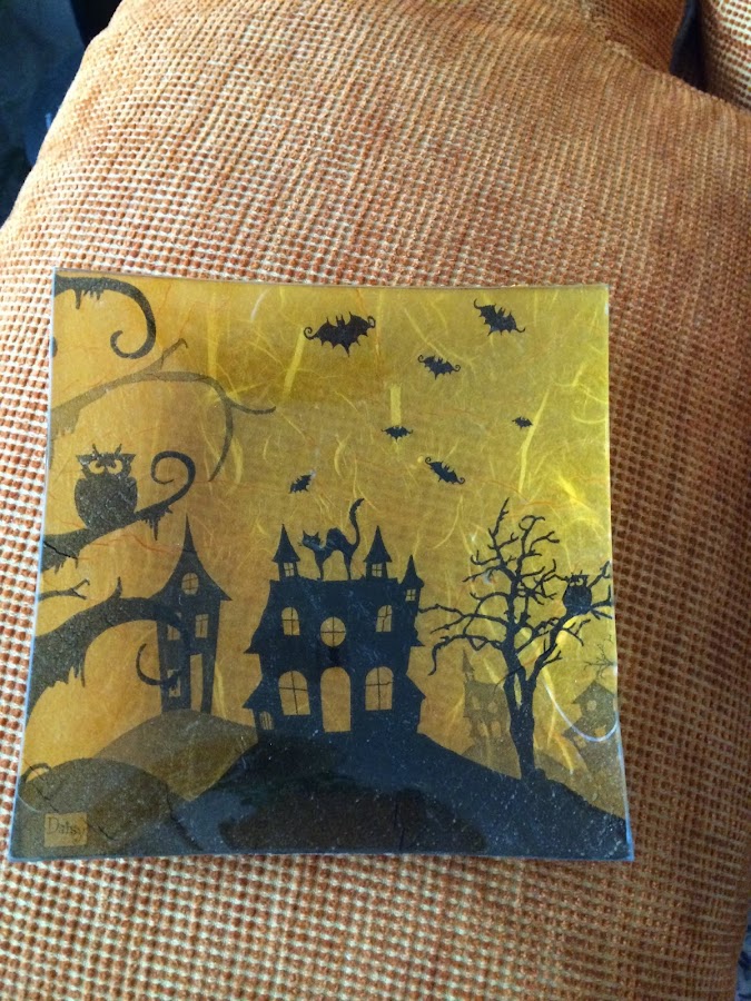 Aunque ya hace 15 días que ha pasado halloween o todos los santos, voy a poner un tarro momia muy fácil y rápido de hacer y que yo lo veo simpático. Y este plato con servilleta, os gusta? Muy del tema ...