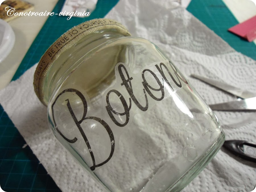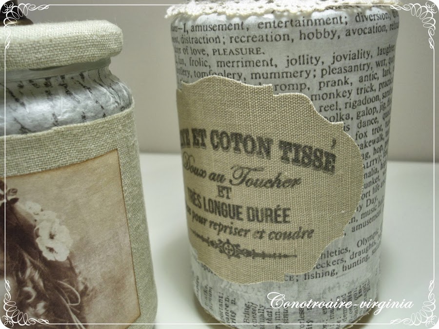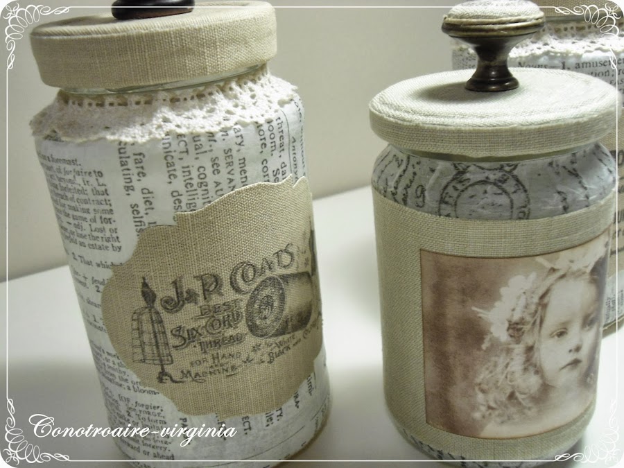 Los tarros los he forrado con papel, es un papel muy finito pero muy resistente y se pega muy bien, y queda un poco transparenta, parecido al papel de arroz.