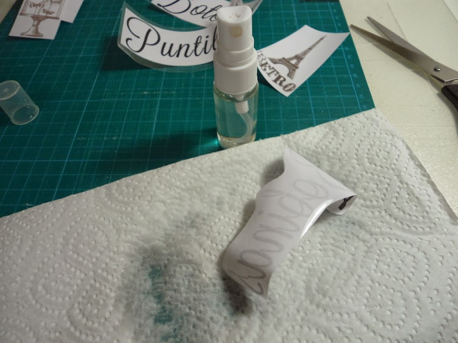 Y ya la podemos pegar en la superficie que queráis, sin pegamento y sin nada, presionando bien para sacar todo el aire y que no queden burbujas. Esta técnica es ideal para el cristal, he incluso queda mejor en porcelana y mental.