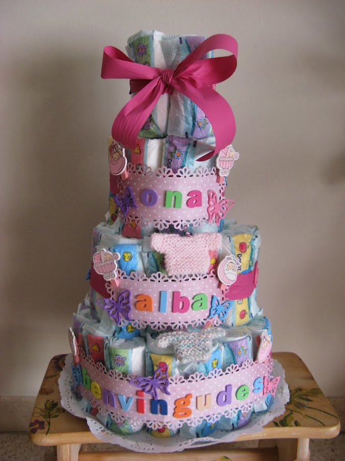 Esta tarta de pañales fué un encargo y como ya debe estar entregada os la enseño