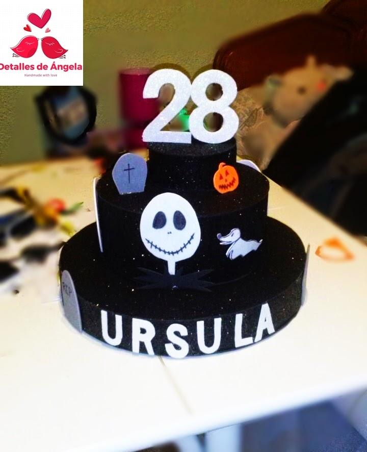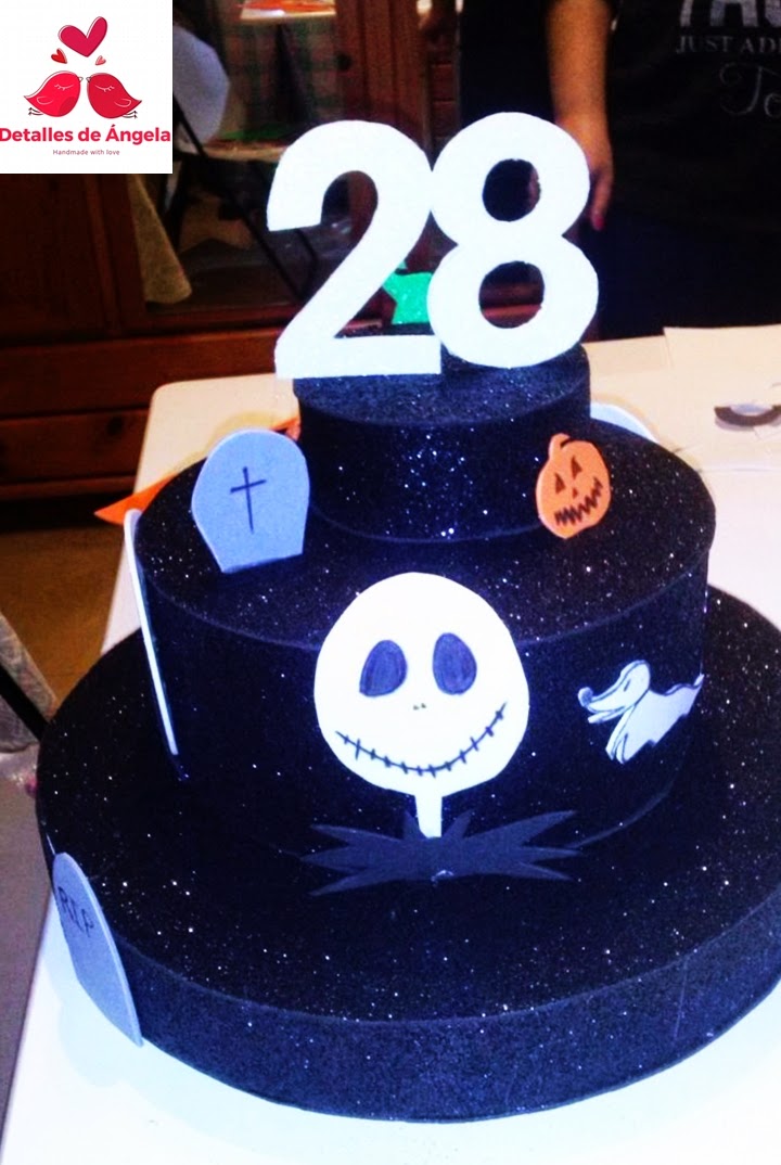 Hoy os traigo una tarta de Goma Eva que realicé para una sorpresa muy especial por el 28 cumpleaños de una enamorada de Tim Burton y de sus películas.