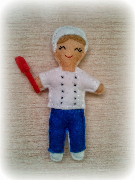 Y ya por último le hice un imán de nevera personalizado en fieltro, una "Miniyo" que le pareció muy graciosa: